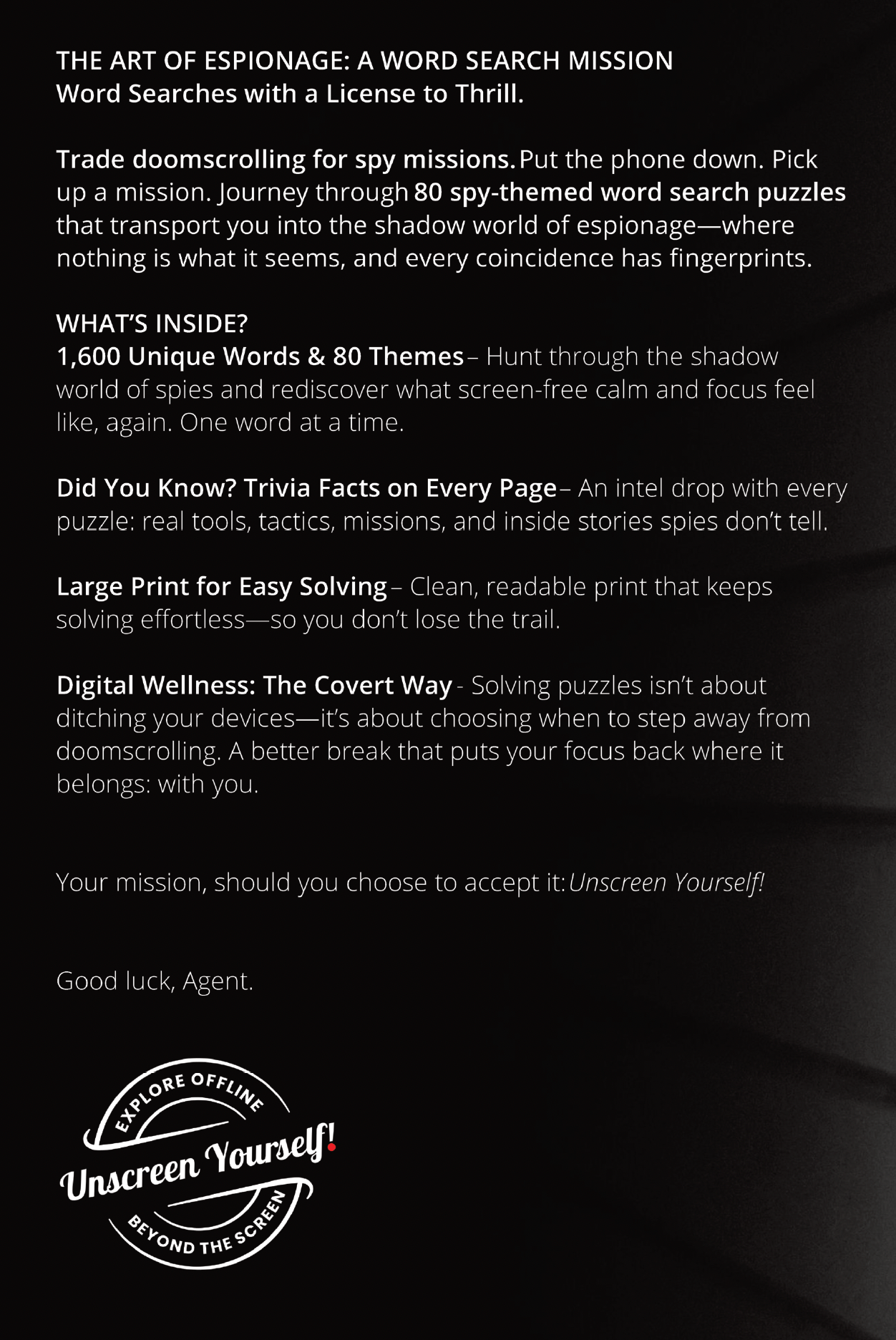 Most word search books are random word grids. Every page here has a Did You Know? Trivia-Fact about real spy craft—legendary agents, covert operations, secret gadgets that actually existed. Each puzzle becomes a mission briefing.